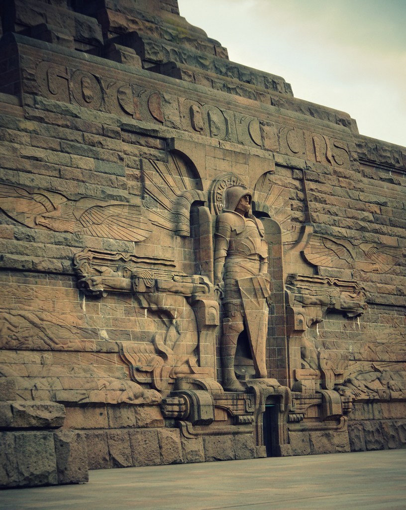 Jedenfalls war es jetzt an der Zeit, große, stolze, monumentale Denkmäler im national-patriotischen Stil zu erbauen, und 1898 wurde der Grundstein für das Völkerschlachtdenkmal gelegt. 1913, zum hundertjährigen Jubiläum der Schlacht, wurde es eröffnet und versetzte ganz Deutschland in solch nationalen Taumel, dass die Nation wenige Monate später den Ersten Weltkrieg vom Zaun brach. Danke, Völki!
