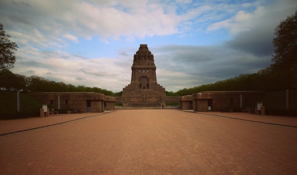 Das Völkerschlachtdenkmal heißt im Volksmund „Völki“, aber kleiner oder niedlicher wird es dadurch nicht. Je näher man kommt, umso bombastischer wirkt es.