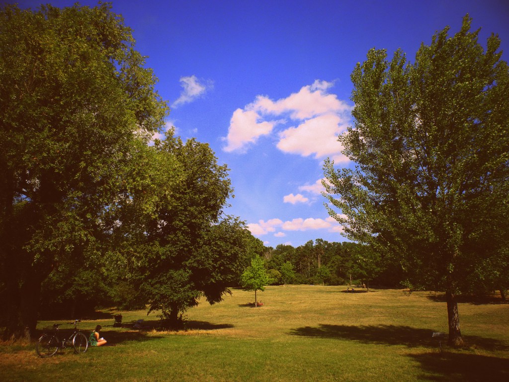 Juli 2022. Volkspark Hasenheide in Berlin-Neukölln. Ein großer, grüner Park mit Streichelzoo, Freiluftkino, Hundeauslaufgelände, Baumlehrpfad, geschichtsverfälschendem Trümmerfrauendenkmal, Rosengarten, Minigolfanlage, einem Imbiss, der keine Currywurst im Angebot hat, aber händeringend Mitarbeiter sucht, dem von Friedrich Ludwig Jahn 1811 persönlich angelegten ersten Turnplatz, und dem Sri-Ganesha-Hindu-Tempel, dessen Fertigstellung sich genauso verzögert wie einst die des Berliner Flughafens.