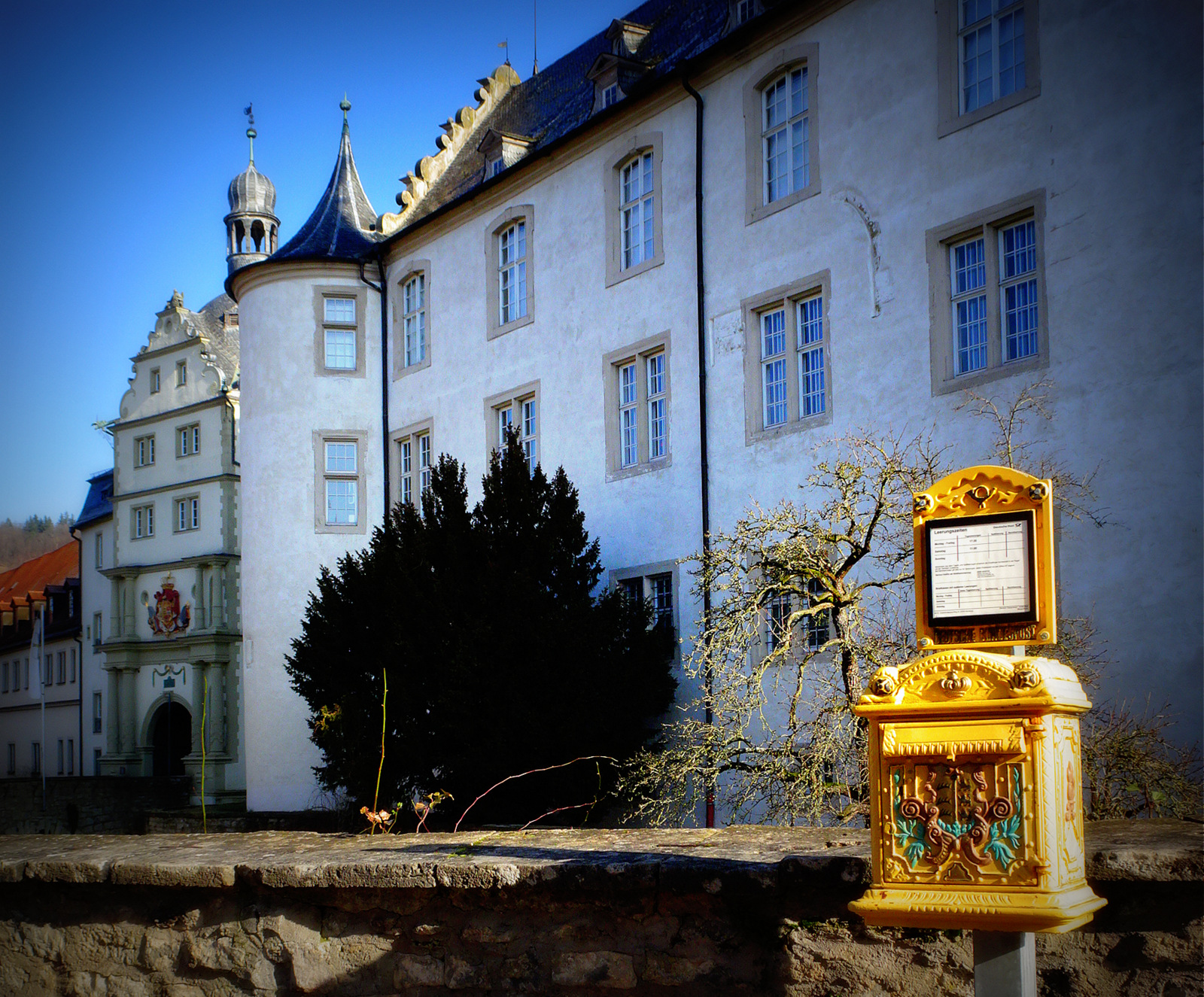 Denn derzeit weile ich in Bad Mergentheim, wo der wahrscheinlich schönste Postkasten Deutschlands steht. Und eine von hier versandte Postkarte ist doch etwas ganz besonderes.